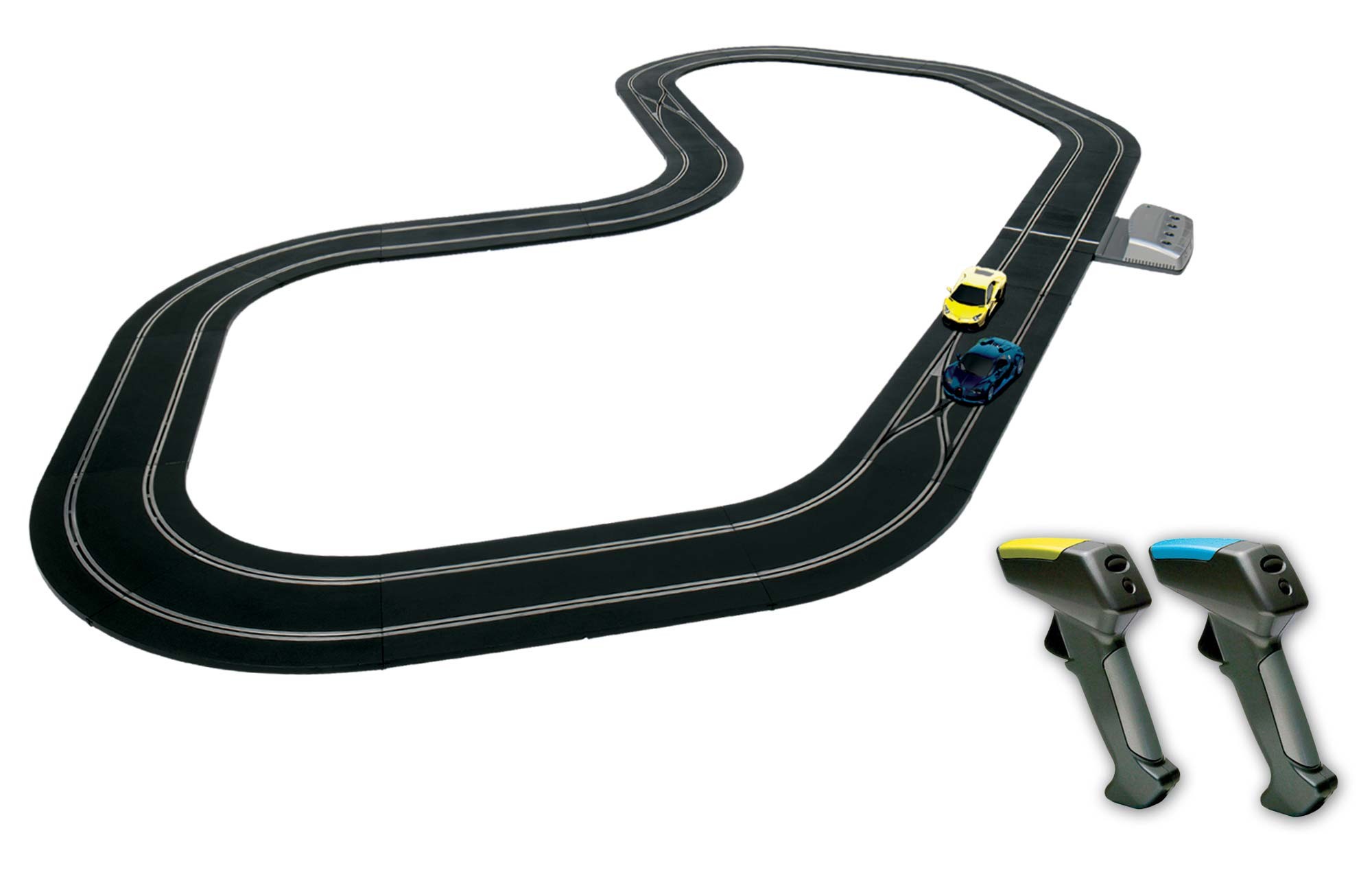 Our Pro slot car system works just like traditional layouts – you control your digital slot cars using a controller, guiding them around a slot car track. But there are added benefits, such as lane-changing, the ability to race more than two cars, and fun game features. Get ready to take your strategic gameplay to the next level, overtaking your competitors, blocking their progress and taking tactical pit stops as needed.