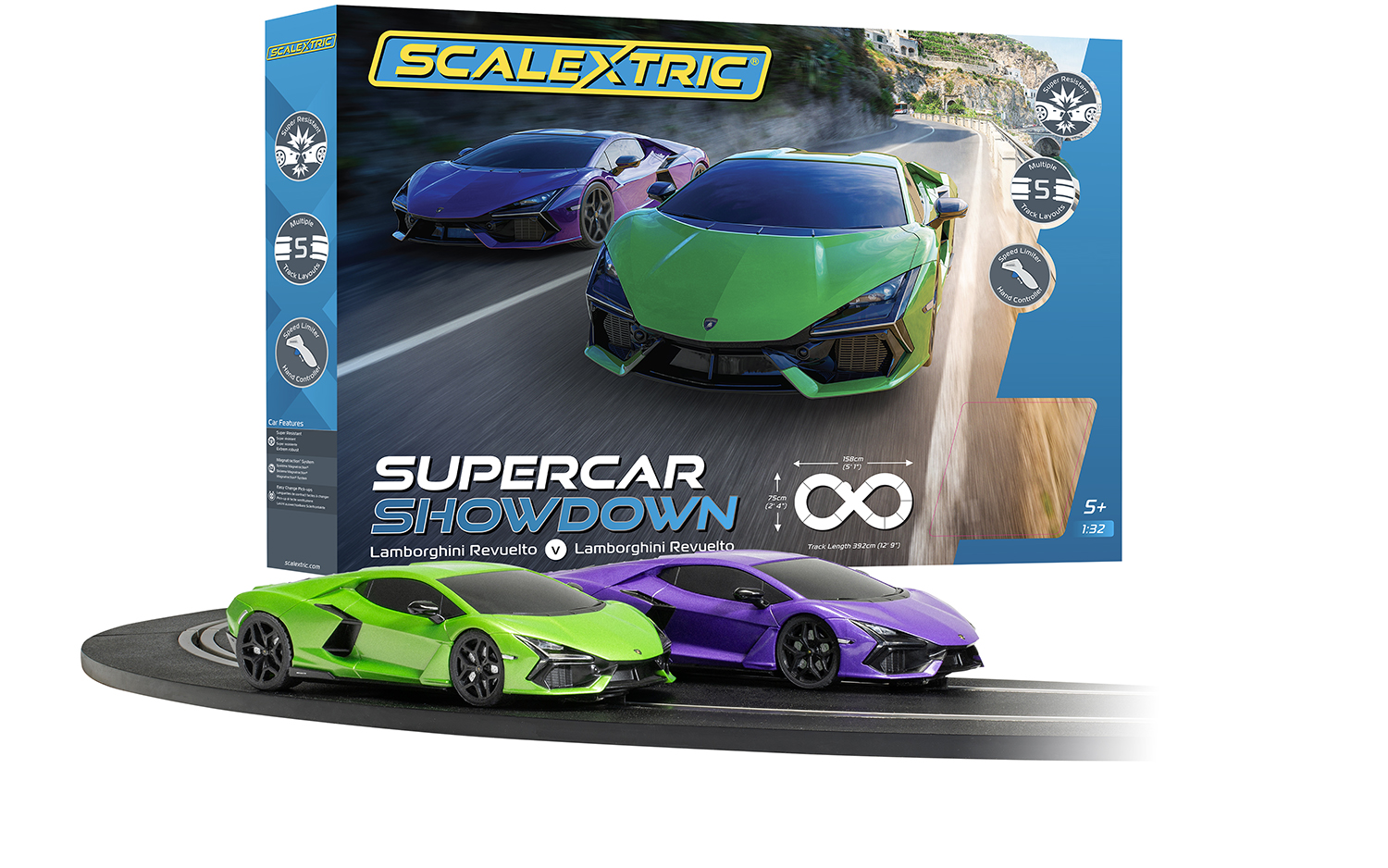 As one of the most aspirational cars in the world, the Lamborghini Revuelto is the perfect subject for our Supercar Showdown Race Set. Providing that luxury entry point to the world of slot car racing, you finally get the chance to put this speedster to the test, going head-to-head with another Revuelto! Since both cars are equal, the winner will always be the one with the most Scalextric skill – is that you?
